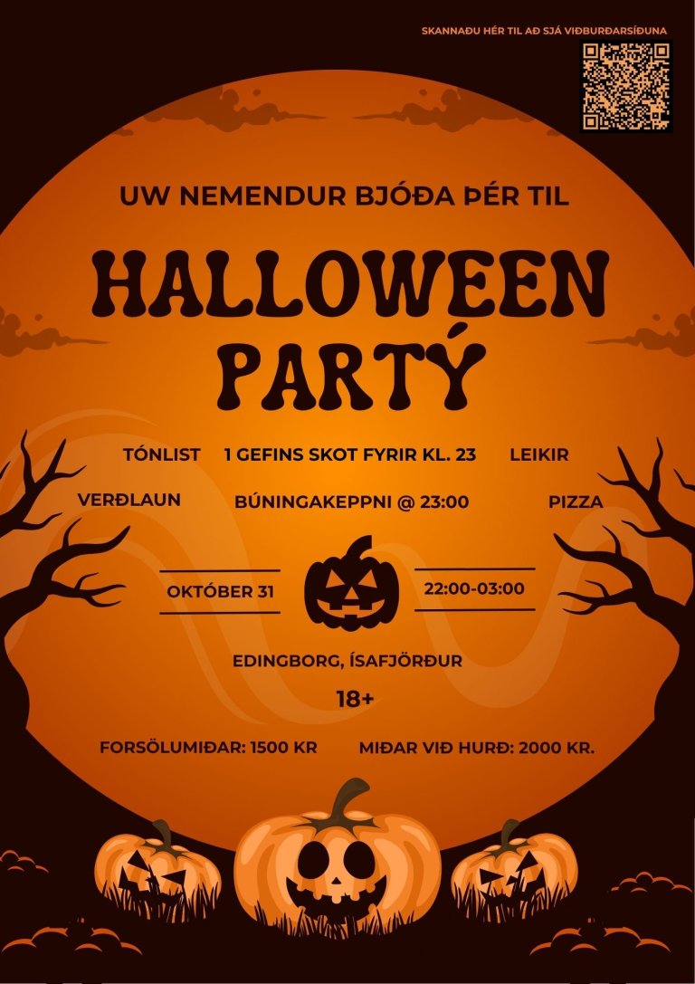 Haltu þér því myrkrið nálgast! Við nemendur Háskólans á Vestfjörðum erum spennt að bjóða ykkur á Hrekkjavökupartýið í ár!