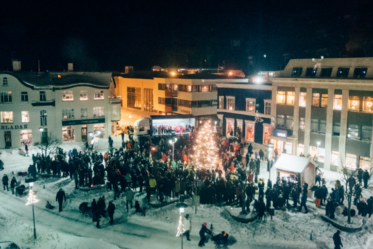Lúðrasveitin verður með fjöruga tóna, barnakór og krakkar úr forskóla TÍ flytja jólalög og jólasveinarnir verða á sínum stað með söng og sprell.
